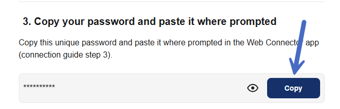8 - Copy your password from the CashFlow Central installation dashboard and paste it into the Web Connector.