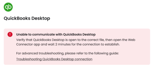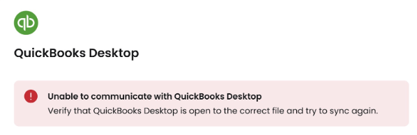 If the issue originates from QuickBooks Desktop, you will see the following warning message: