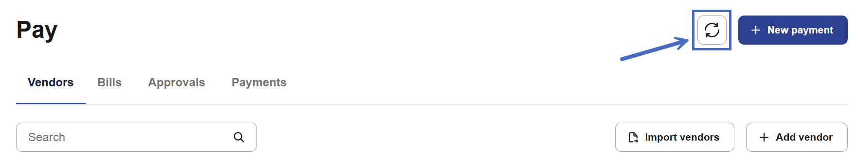 After verifying the correct setup, allow up to 2 minutes for the connection to be restored. Once 2 minutes have passed, go to your CashFlow Central account and select the sync icon at the top left to initiate the sync process.