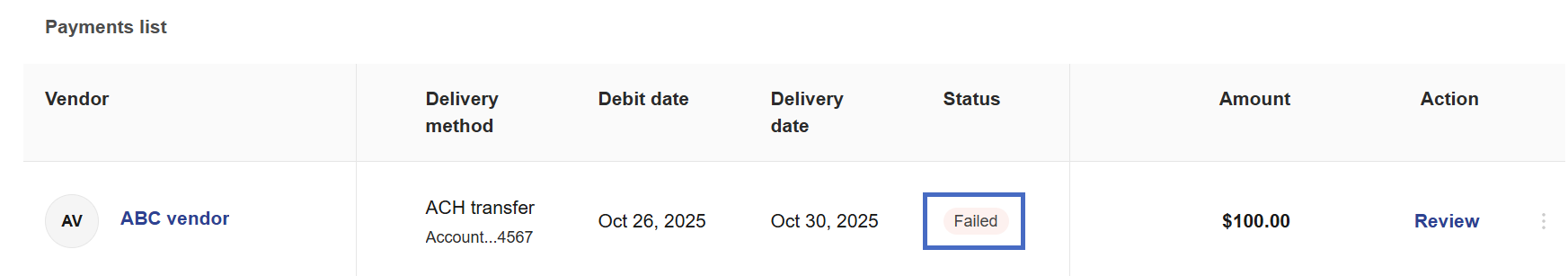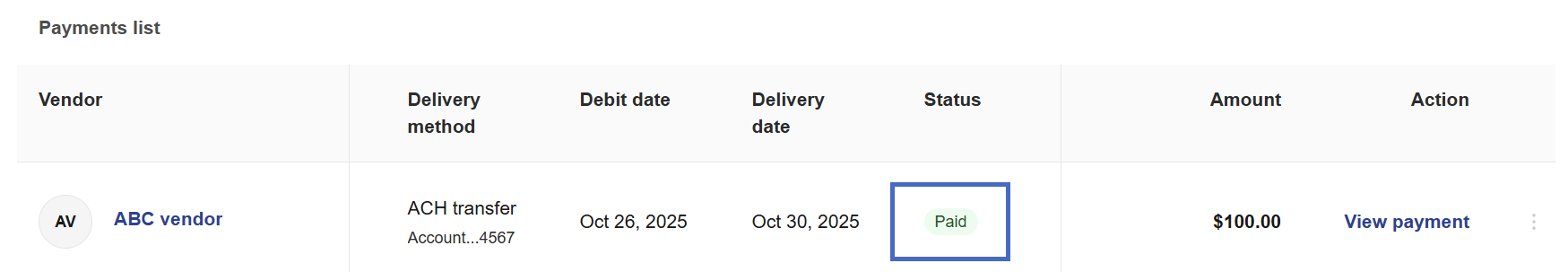 4- When the payment is sent to the vendor, the status changes to Paid.