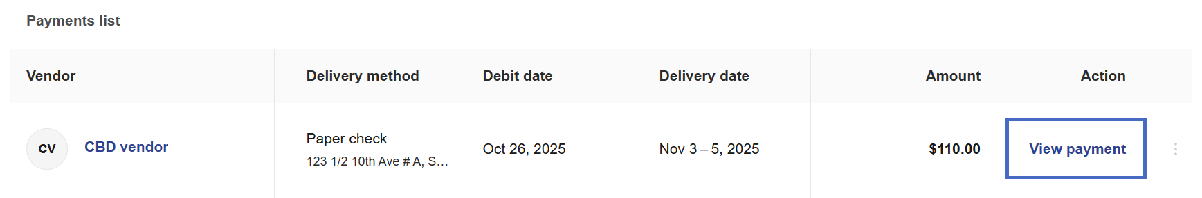 4- Find the desired check payment. Select View Payment.
