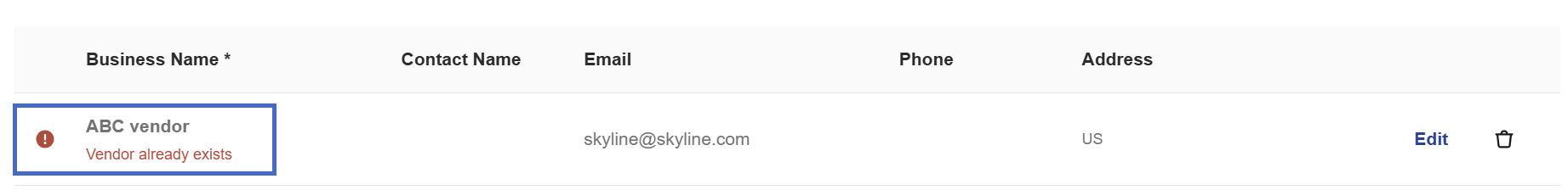 - You can delete unnecessary vendors by selecting the delete icon next to the vendor you want to delete.