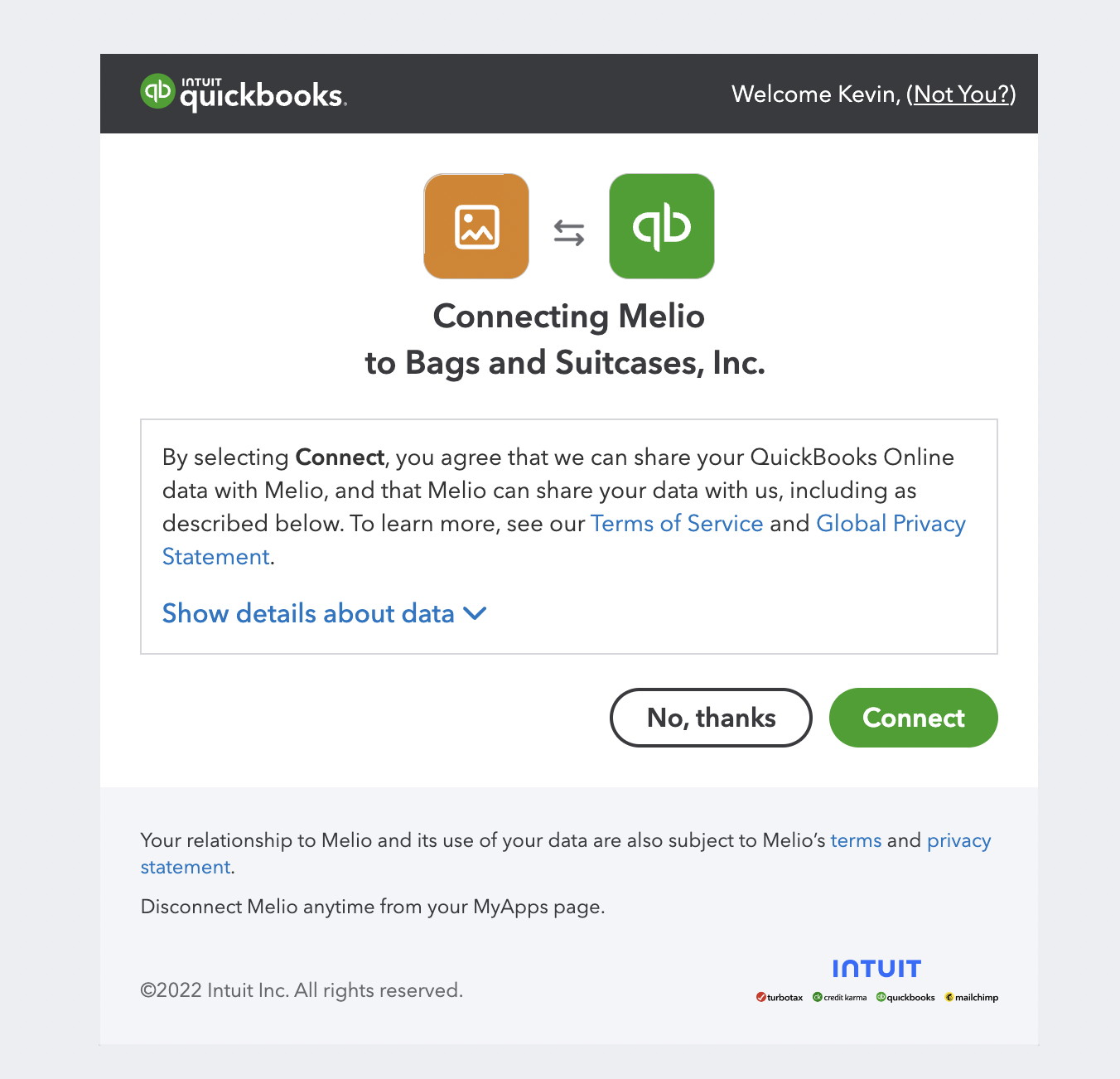 7- In the QuickBooks Online pop-up window, select Connect to continue.