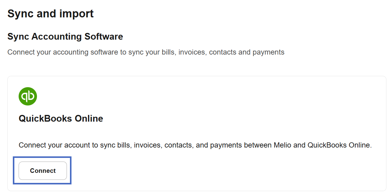 4- In the Sync and import section under Sync Accounting Software, find QuickBooks Online.