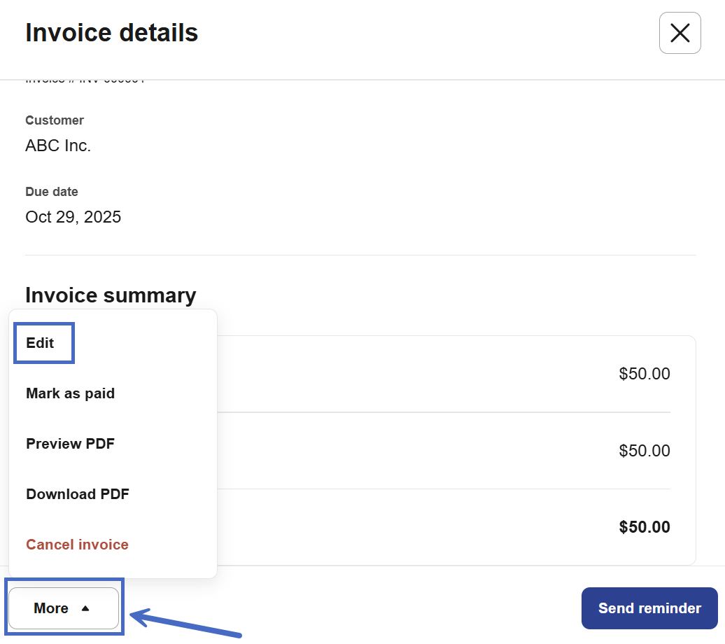 5 - On the Edit invoice window, scroll down to the bottom of the page.