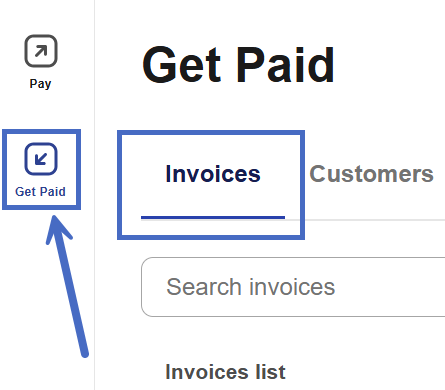 1 - Select the Invoices tab from the Get Paid dashboard.