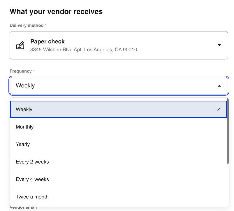 9- Select the payment frequency by selecting the dropdown menu to choose how often payments will be made.