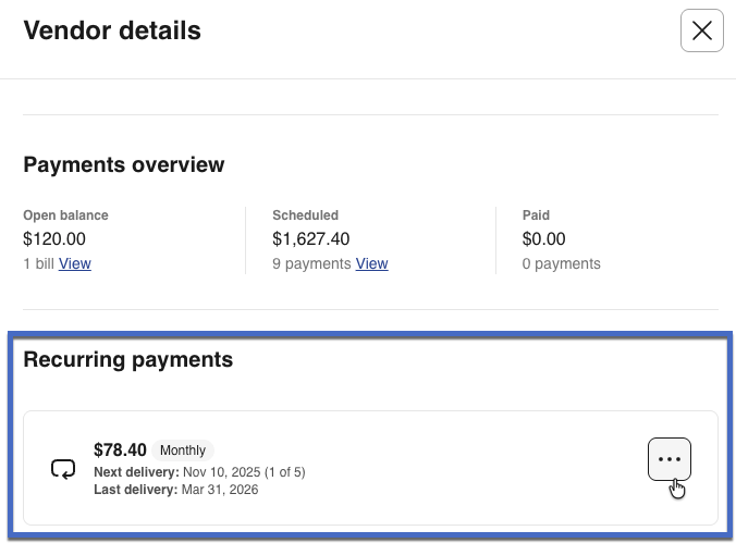 3- View recurring payment details for this vendor in the Vendor details window on the right.