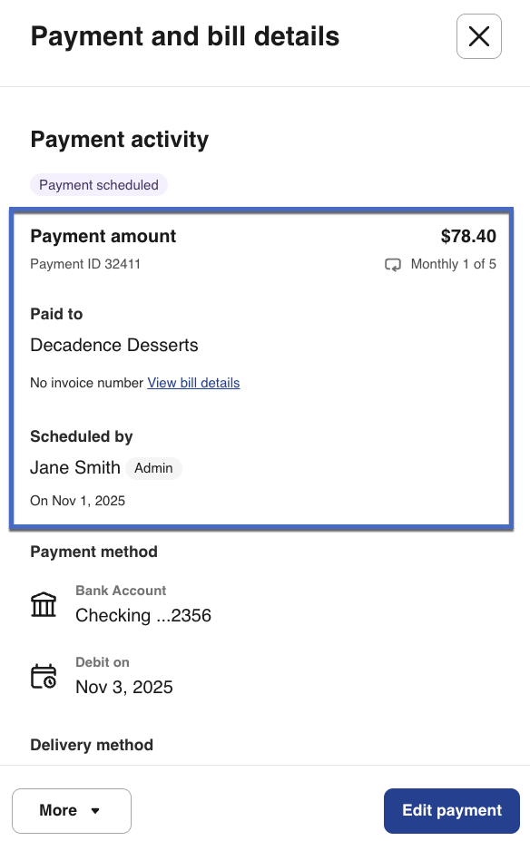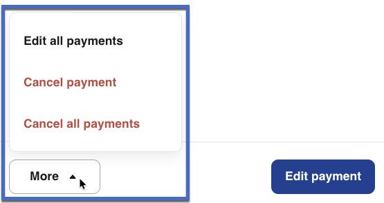 5- To edit the recurring payment, select More to open the action menu where you can edit or cancel the payment.