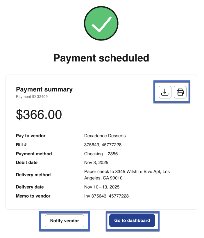 b. To email your vendor a detailed summary of the payment, select Notify vendor.