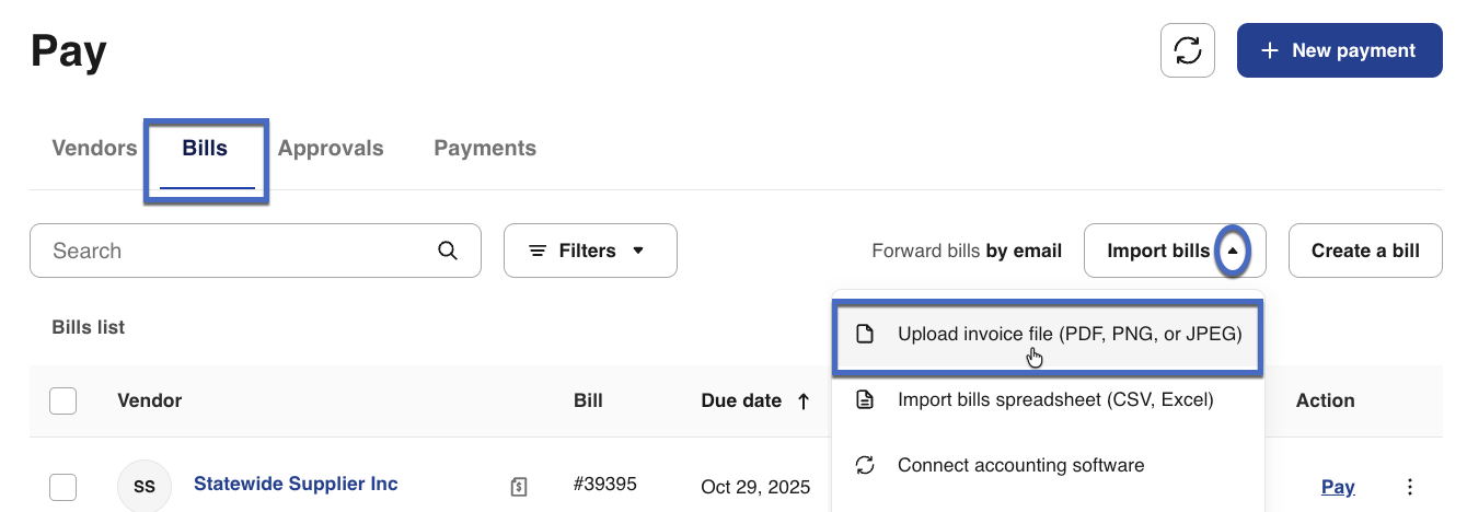 That's it! You've successfully created a new bill using an invoice. You can now find your new bill in the Bills tab, ready for review and payment when needed.