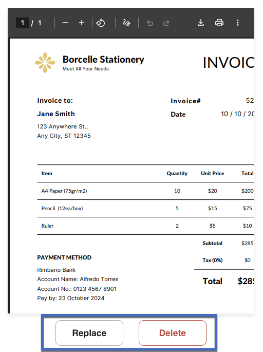 7- Once uploaded, the invoice will appear on the left side of the Bill details page: