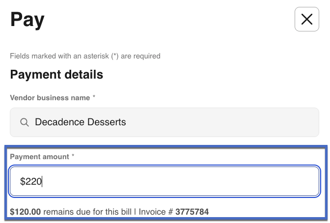 The partial payments feature in CashFlow Central gives you greater flexibility in how you handle your vendor payments. You can split a single bill into multiple payments and choose different payment methods for each one. CashFlow Central will automatically track your remaining balance after each partial payment.