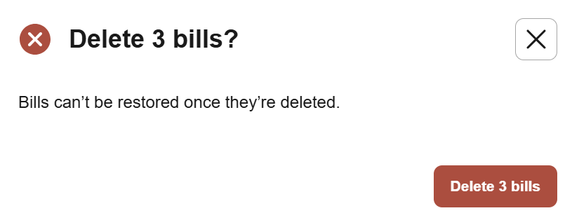 5- Confirm the action in the pop-up window by selecting Delete X bills.