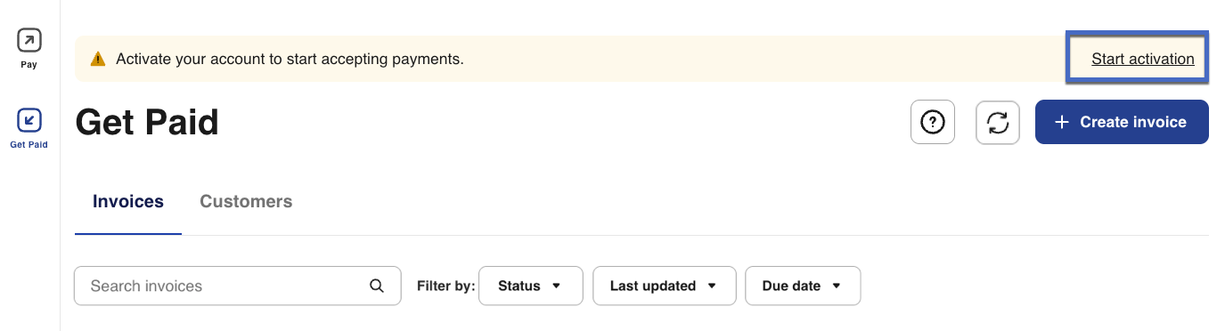 That's it! Your Get Paid account is now activated and ready to accept customer payments. You can begin creating invoices and managing your payment processing through the Get Paid dashboard.