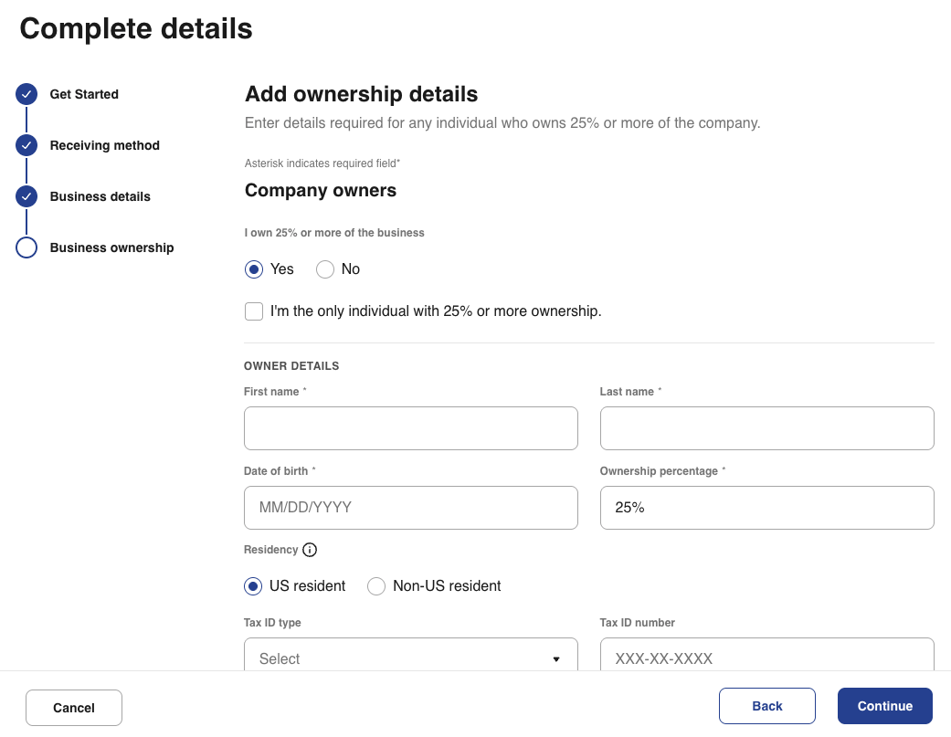 Add business and ownership details
