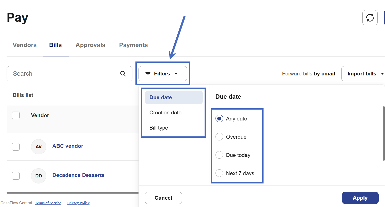 CashFlow Central helps you keep track of your unpaid bills, so you never miss a due date.