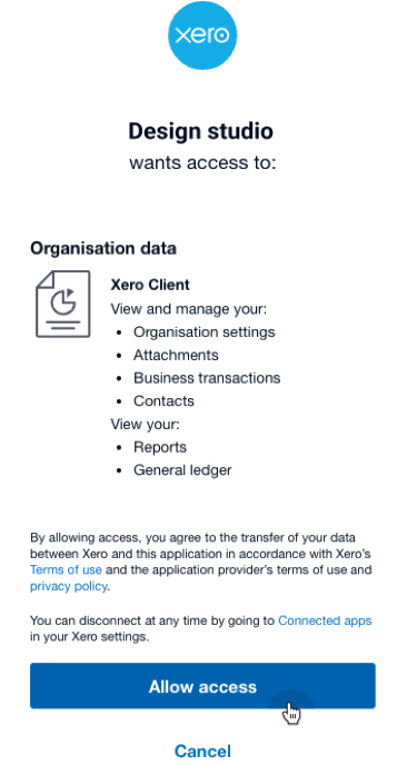 4 - You will now be redirected to Xero. Allow access to proceed with the sync.