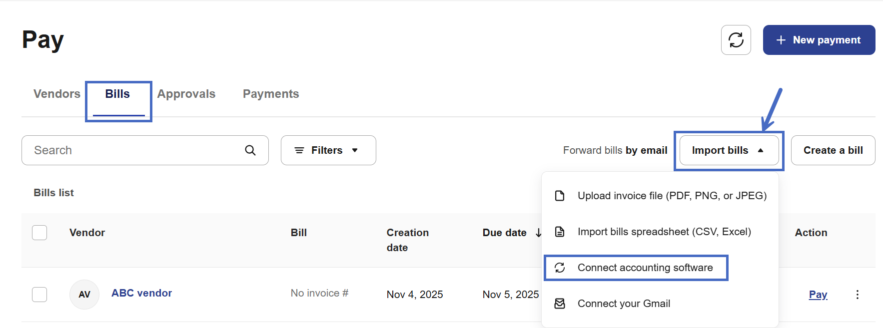 1 - From your CashFlow Central Dashboard, select the Bills tab.
