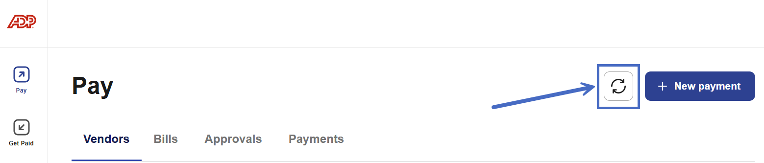 1 - In your CashFlow Central dashboard, select the Sync icon in the top right corner of the screen.