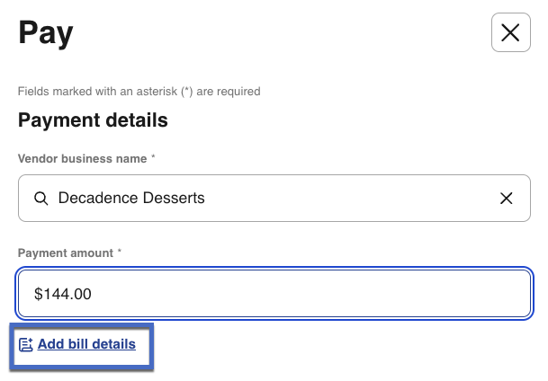 7- To include an invoice with your payment, select Add bill details.