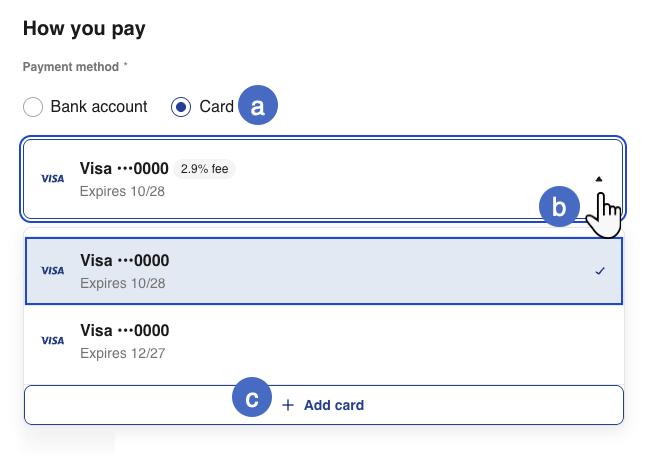 b. Use the dropdown menu to select the card you want to pay with.