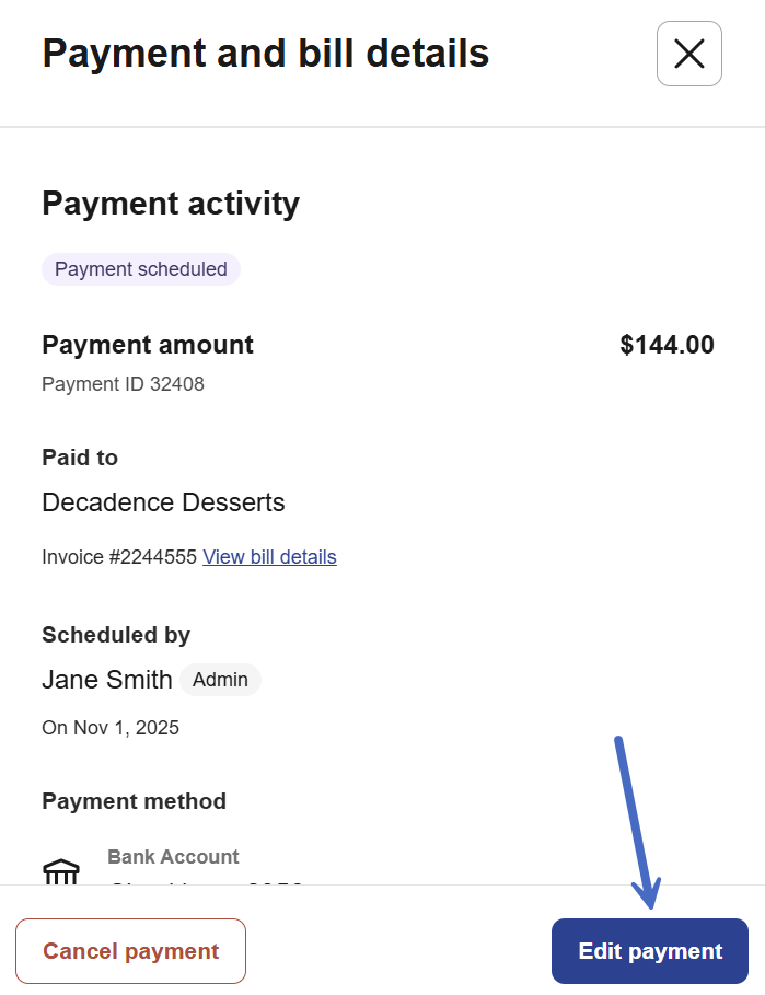4 - In the Payment and bill details window, select Edit payment.