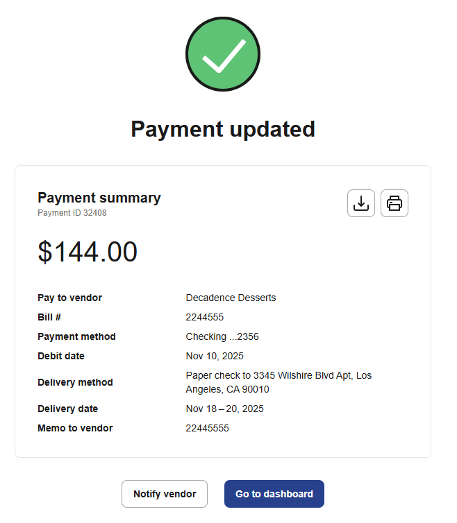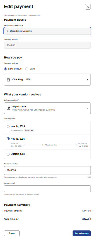 CashFlow Central lets you change your mind and edit the details of a payment even after you schedule it.