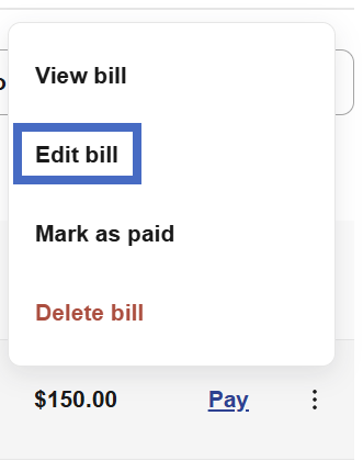 5- In the options menu, select Edit bill.