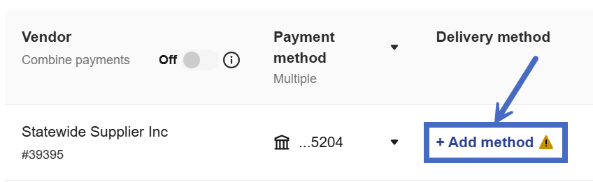 This error may occur if you haven’t set up the vendor’s preferred delivery method, especially if this is your first payment to this vendor.