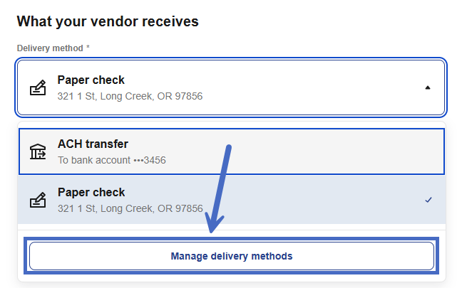 2 - When you reach the What your vendor receives section, look for the dropdown menu showing your delivery methods.