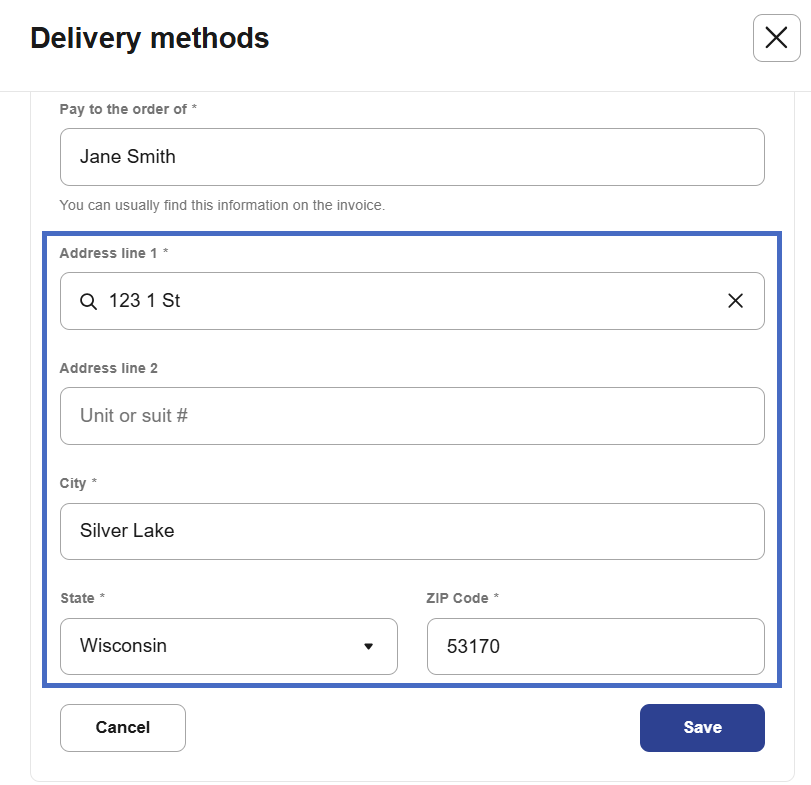 Whether you are in the middle of setting up a new payment or need to correct a payment you just scheduled, you can update the check delivery address easily.