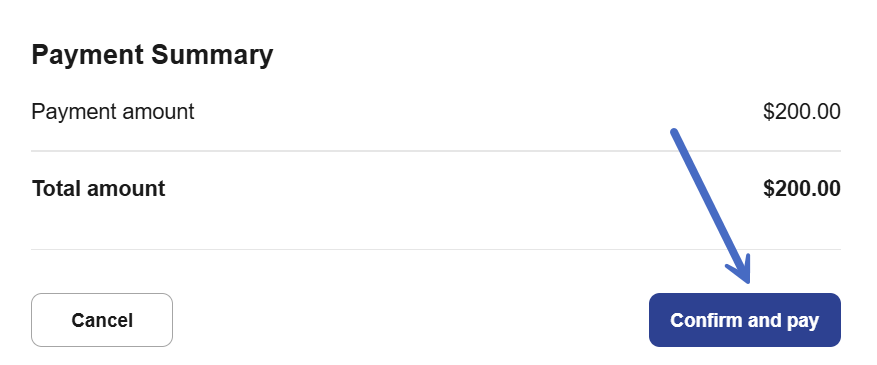 7 - Continue with the rest of your payment setup and select Confirm and pay to finish.