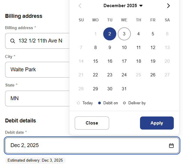 The payment process is slightly different depending on whether you choose to pay with a card or a bank account (ACH).