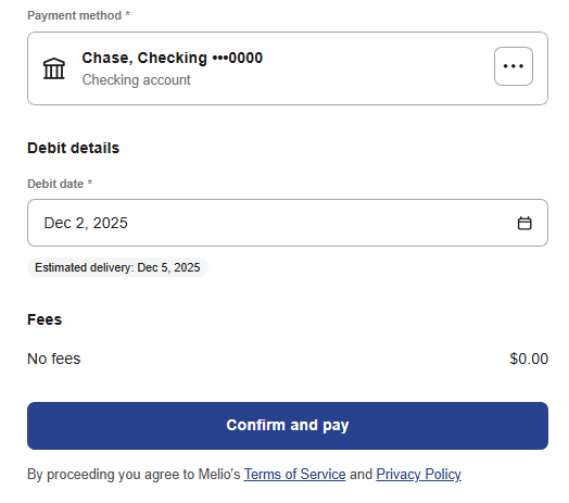 4 - Your saved payment method will appear. Select Confirm and pay to complete the payment.