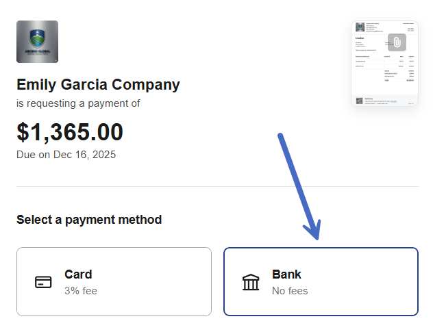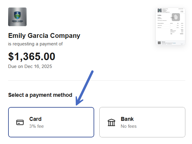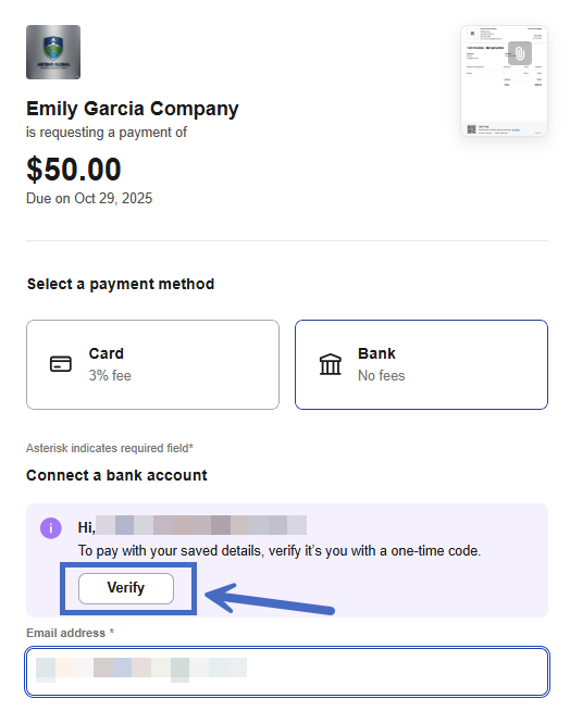 If you've received a payment link from a vendor or business that uses CashFlow Central, paying them is quick and straightforward. The payment amount and other invoice details are pre-filled.