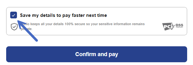 Please note: You can save your payment details for future payments by checking the checkbox.