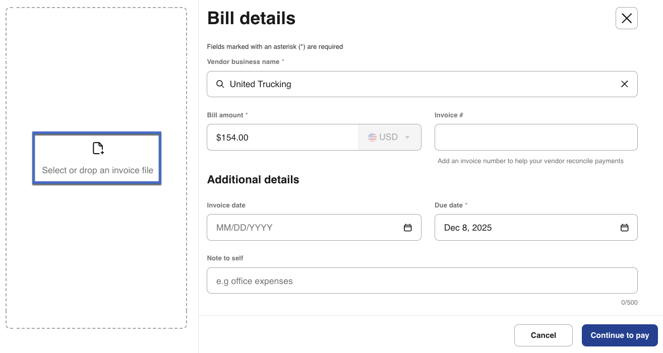 Invoice attachments also create a complete audit trail for accounting purposes, enable automatic data extraction to minimize manual entry errors, and ensure you have proper documentation readily available for tax preparation and financial reporting. This guide walks you through the process of attaching an invoice while creating a payment, helping you streamline your workflow and reduce processing delays.