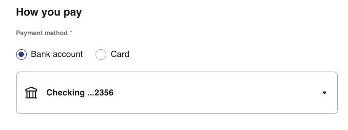13- Choose how you want to pay using the dropdown menu to select your preferred payment method.
