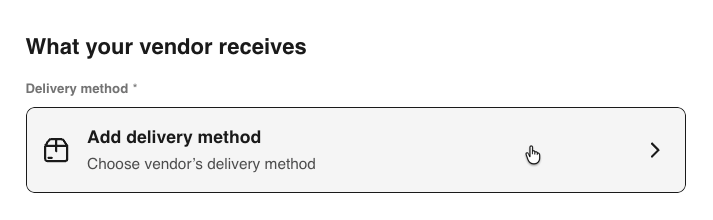 c. Select +Add to add a new delivery method. Enter the additional delivery method in the vendor details.