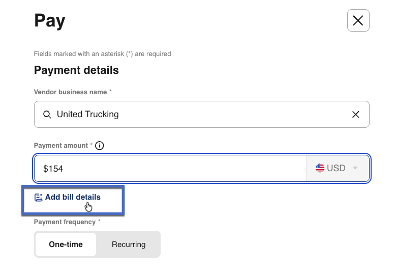 7- To include an invoice with your payment, select Add bill details.