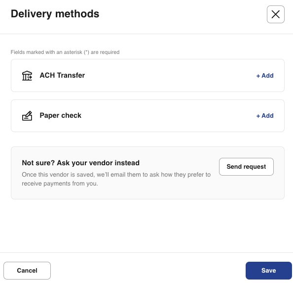 b. If paper check isn't a listed delivery method, you will need to select Manage delivery methods to add it.