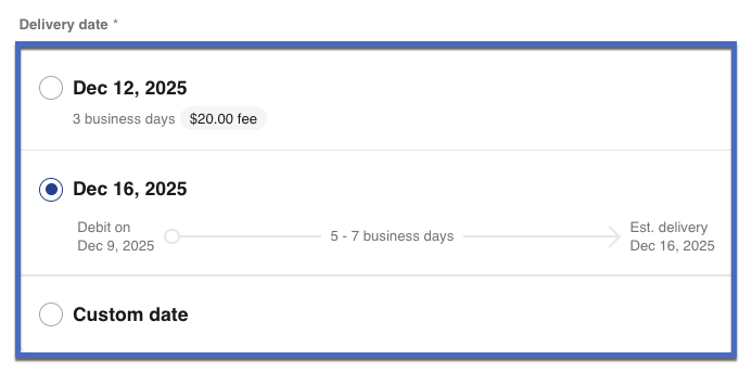 5- When selecting a date for your payment to be debited, make sure to select the desired delivery speed: