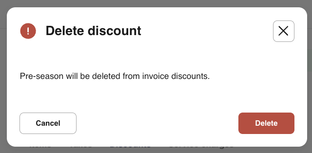 7- In the popup window, select Delete to confirm deletion, or select Cancel to keep the discount.