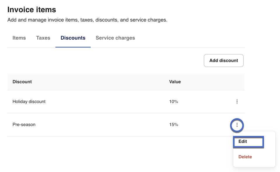Managing your discount catalog in Get Paid makes it easy to apply consistent discounts across all your invoices. You can add new discounts, edit existing ones, or remove discounts you no longer use. This guide covers: