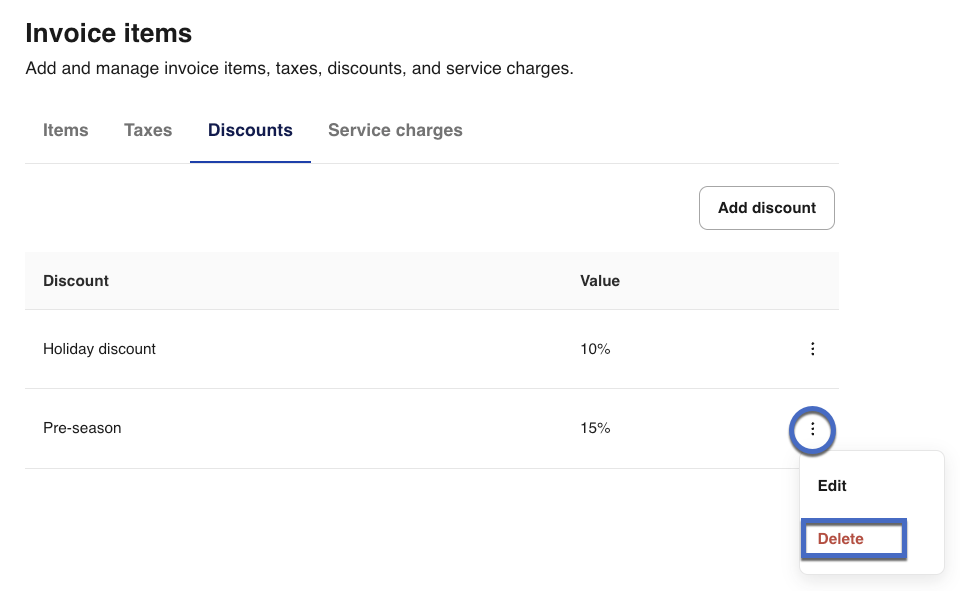 That's it! Your discount has been removed from your catalog and will no longer appear as an option when creating invoices.