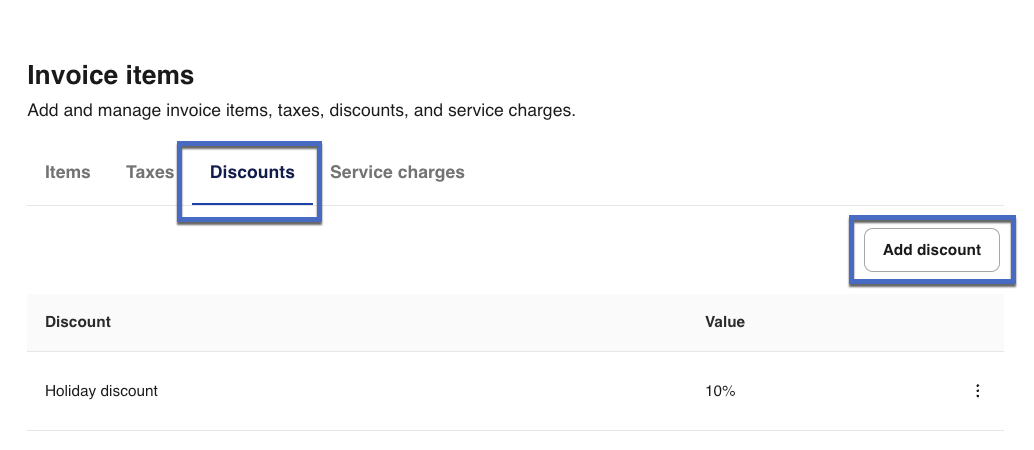 3- In the Invoice items section, select the Discounts tab.