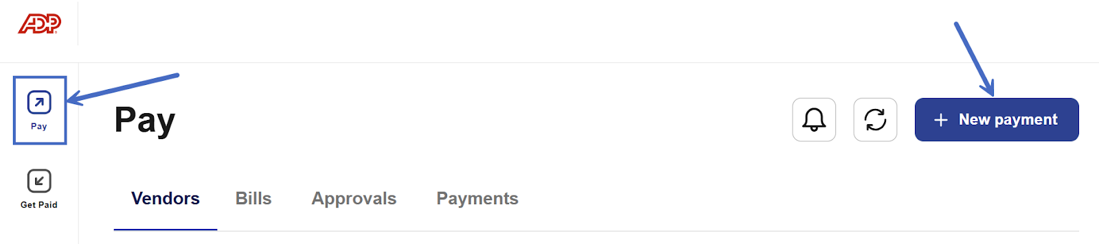 1- At the top left of the page, select Pay.