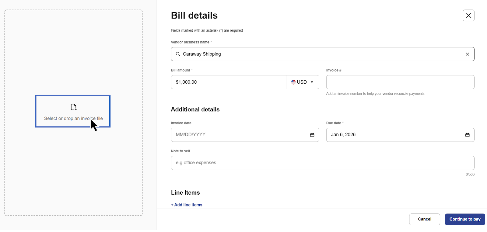 - Upload your invoice file from your device.
