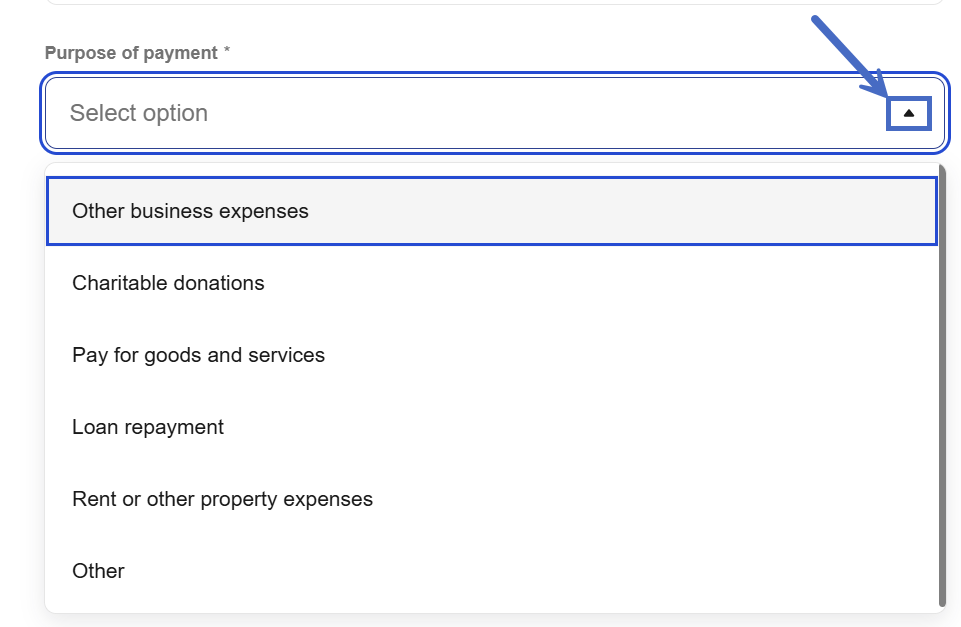 11- Select the purpose of the payment from the dropdown list.